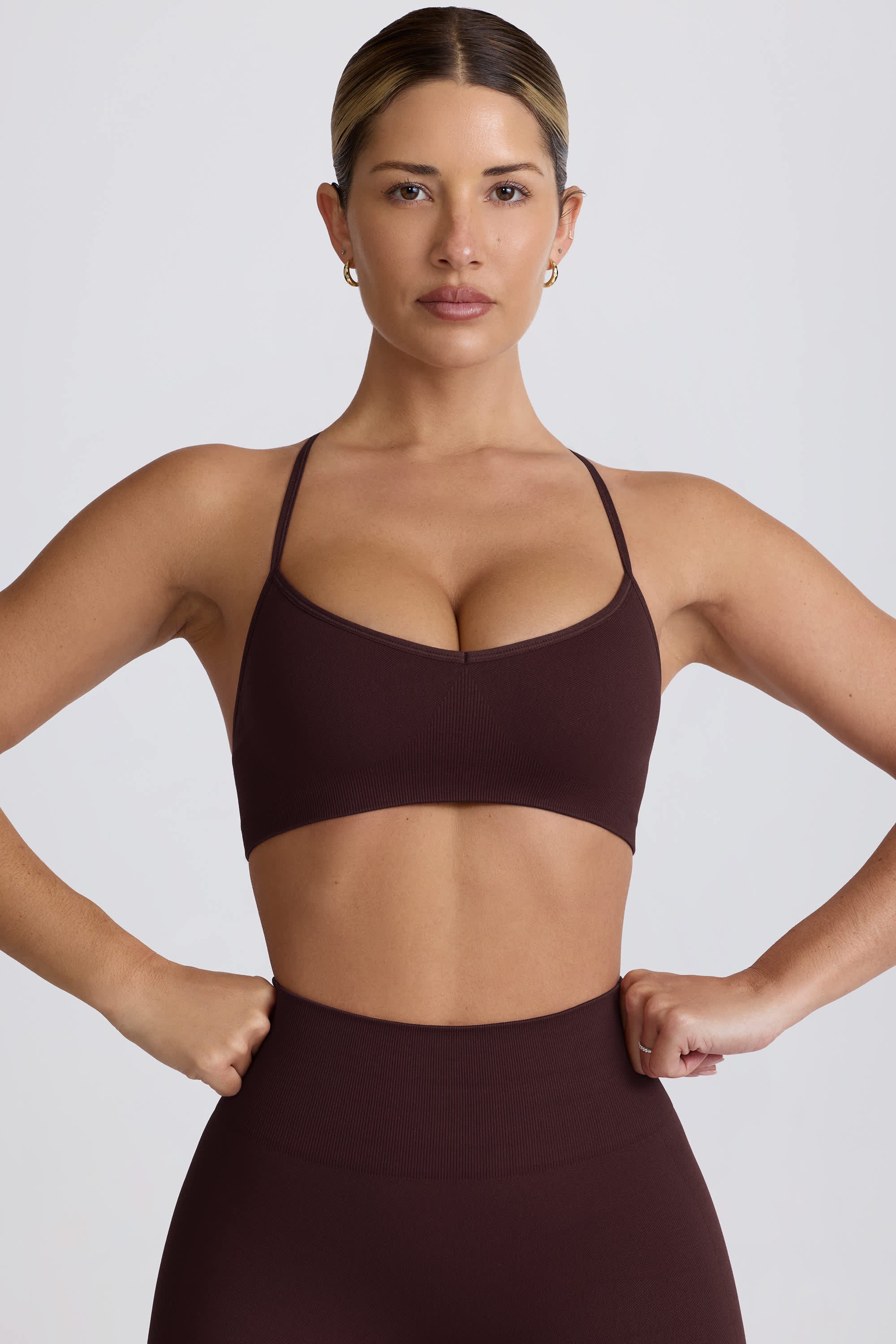 Super Sculpt Seamless Cross-Back Sports Bra in Chocolate
