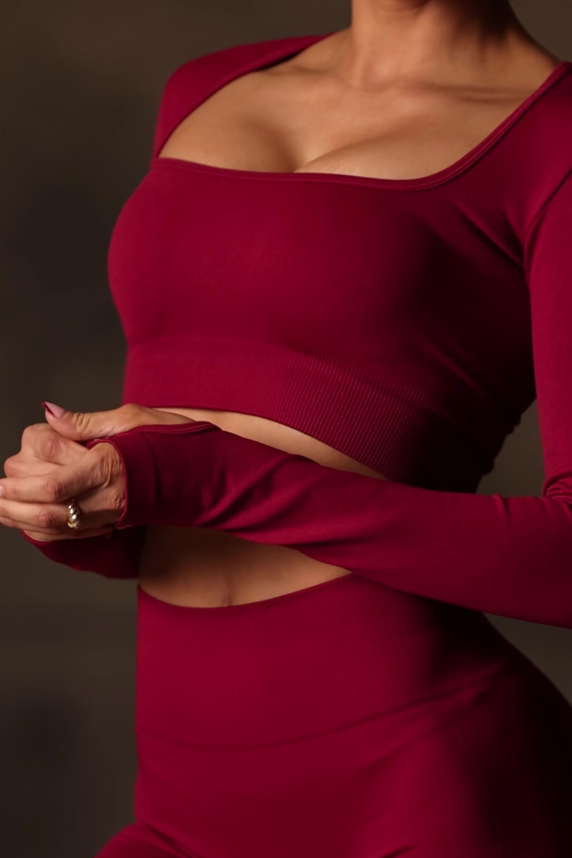 The gym staples you’ve been waiting for. Designed to support you through any workout, this long-sleeve crop top is crafted from our bestselling, four-way stretch Super Sculpt seamless fabric with moisture-wicking, breathable and sculpting properties. It features a non-restrictive yet compressive wide underband for support and comfortable thumbholes to prevent the sleeves from riding up during even the most intense activities.