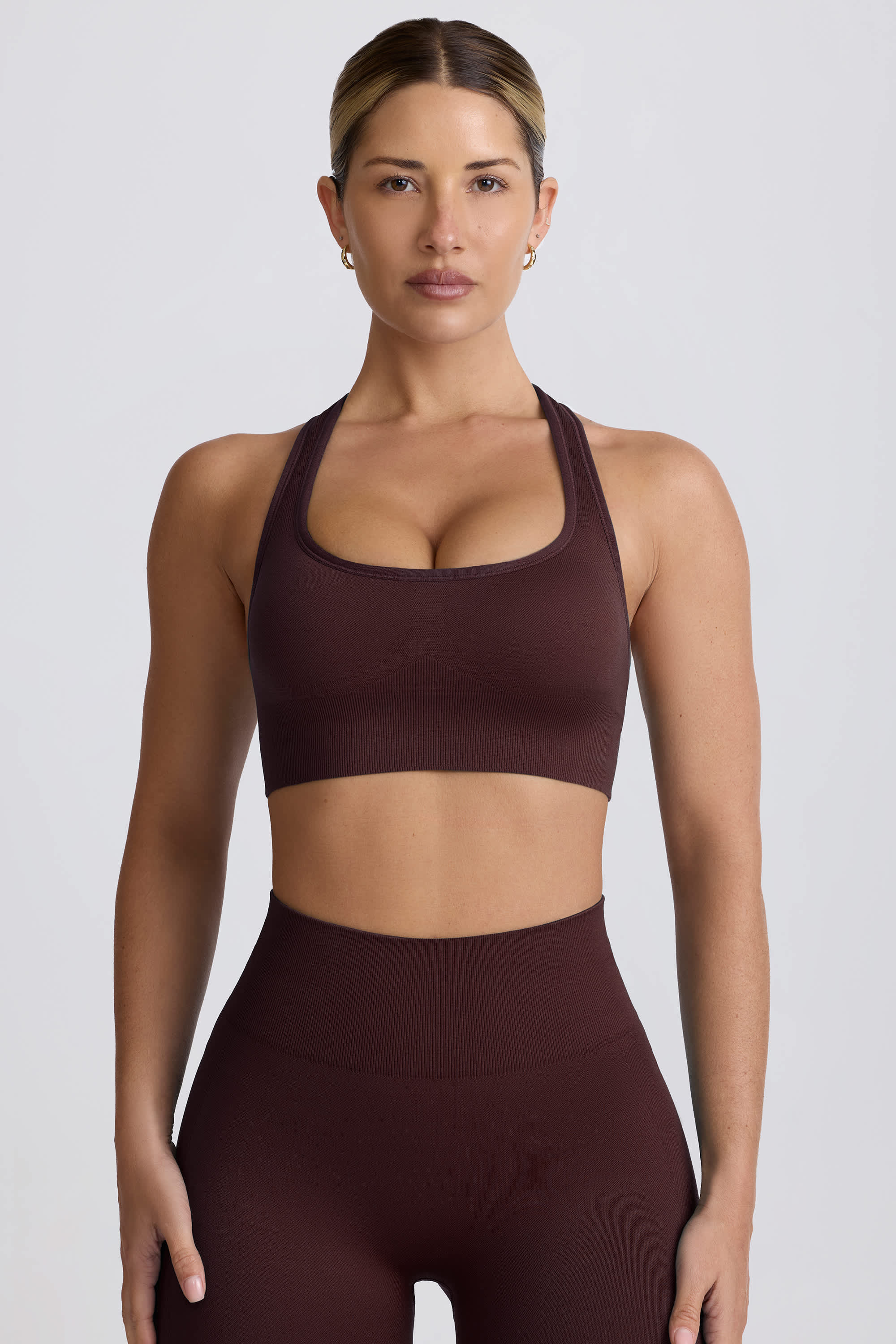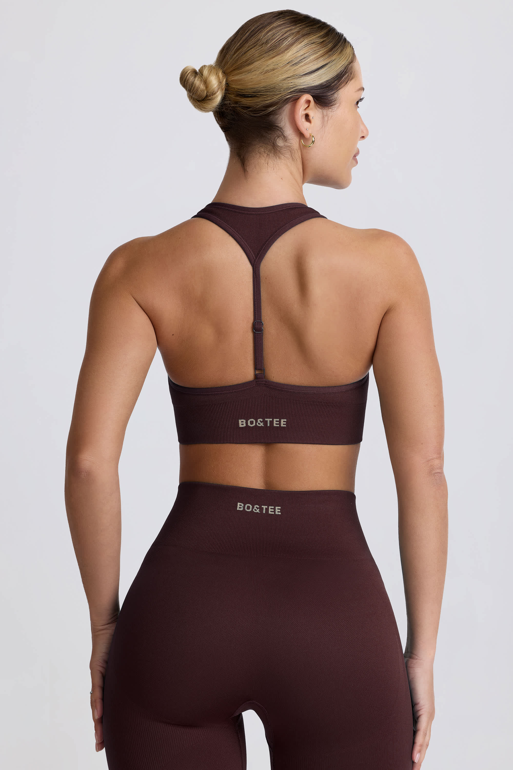 Super Sculpt Seamless T-Back Sports Bra in Chocolate