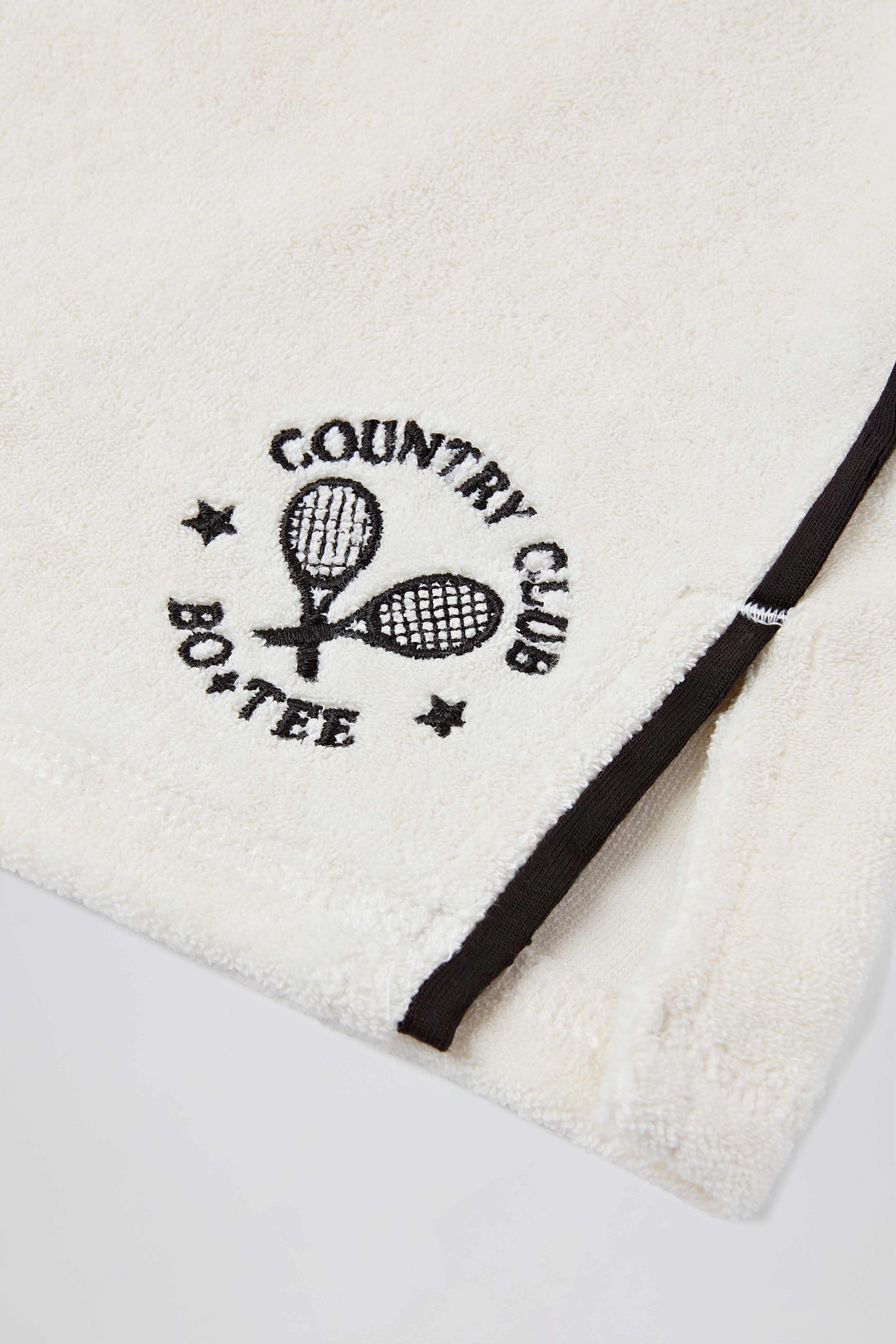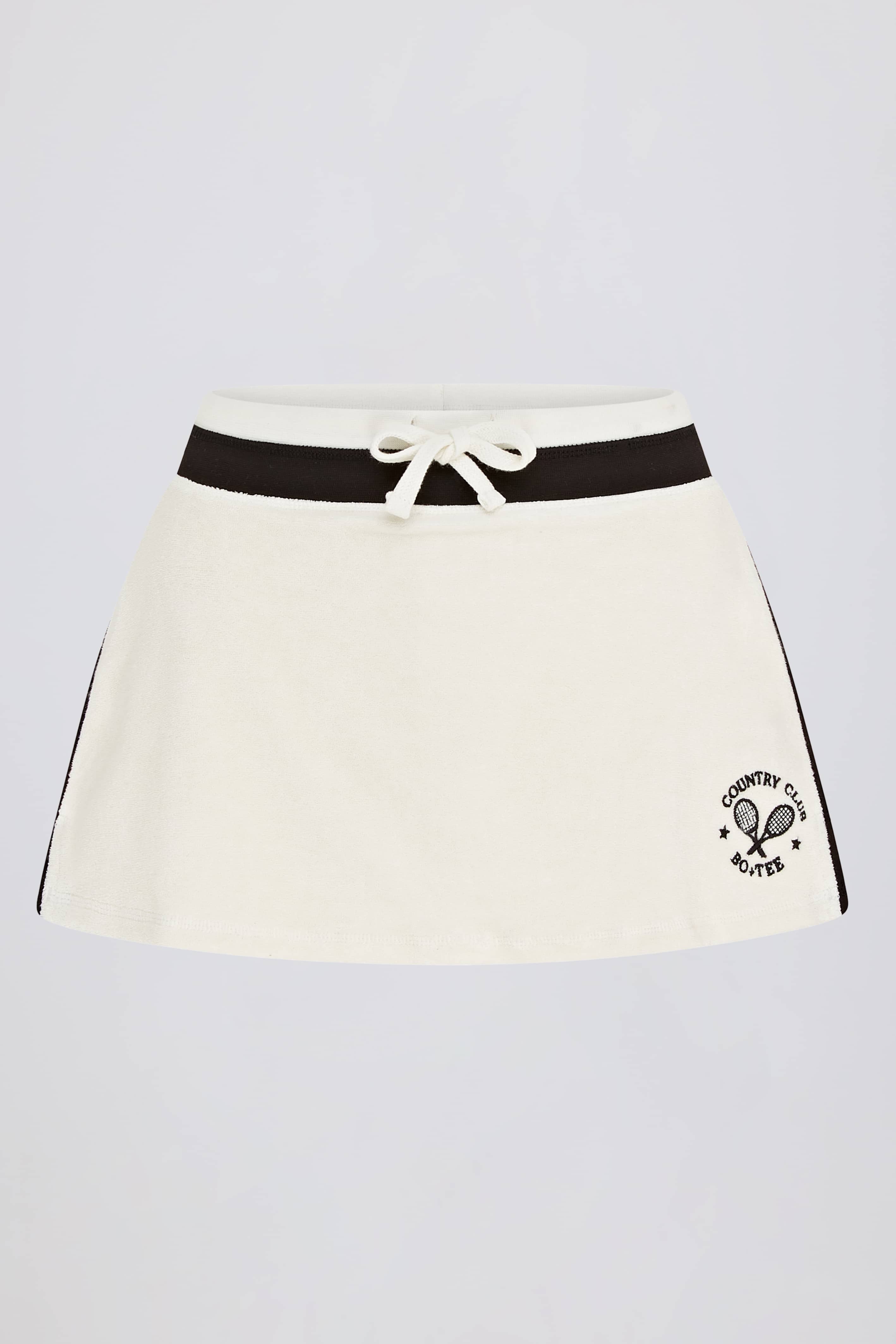 The classics are back. A lightweight, comfortable style made for versatile off-duty styling, this skort is crafted from our softly textured terry towelling fabric to a mid-rise silhouette with built-in shorts for enhanced coverage. Cut to a universally flattering A-line silhouette, it’s elevated with a court-inspired graphic.