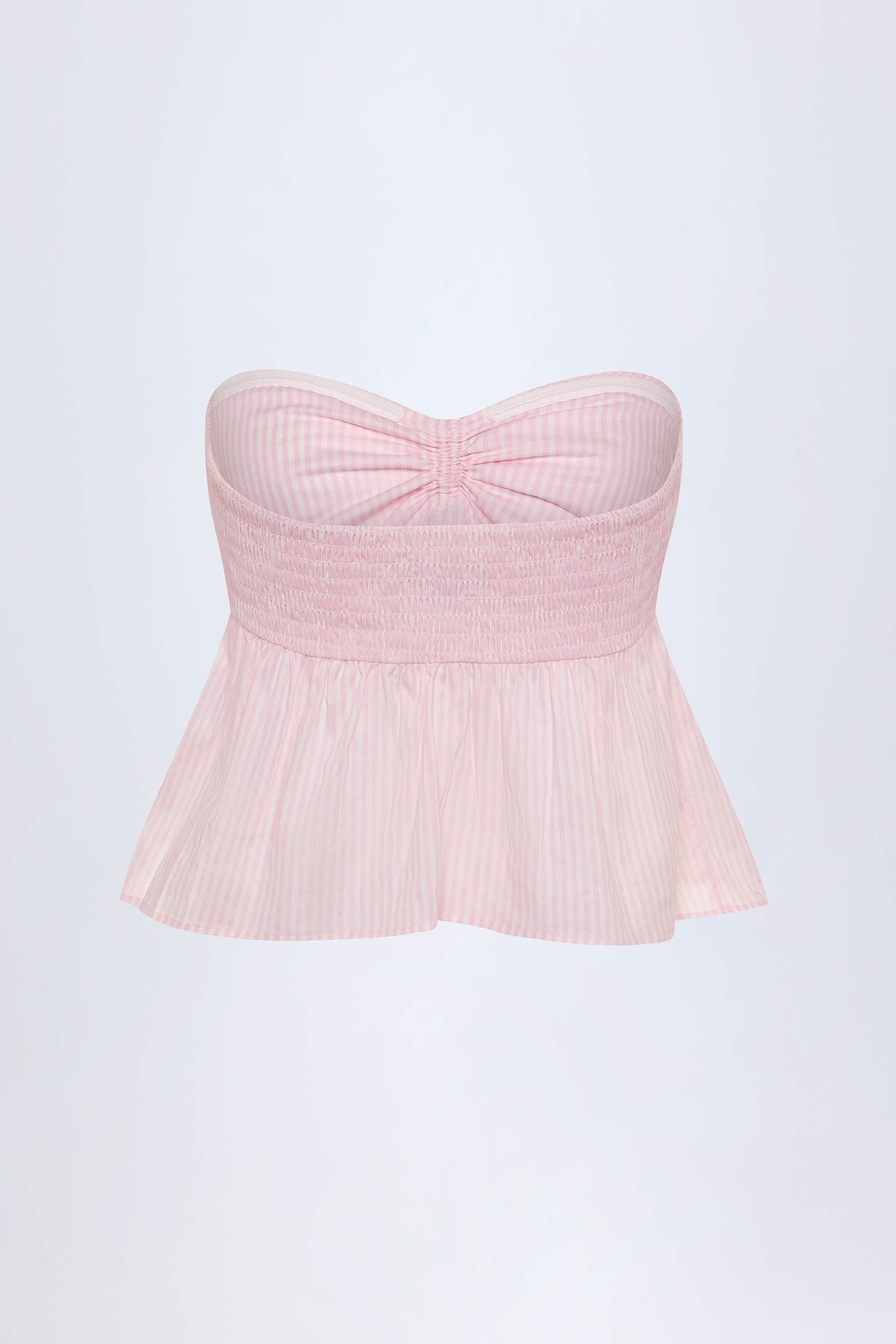 Tie-Front Strapless Cotton-Poplin Crop Top in Pink White Stripe