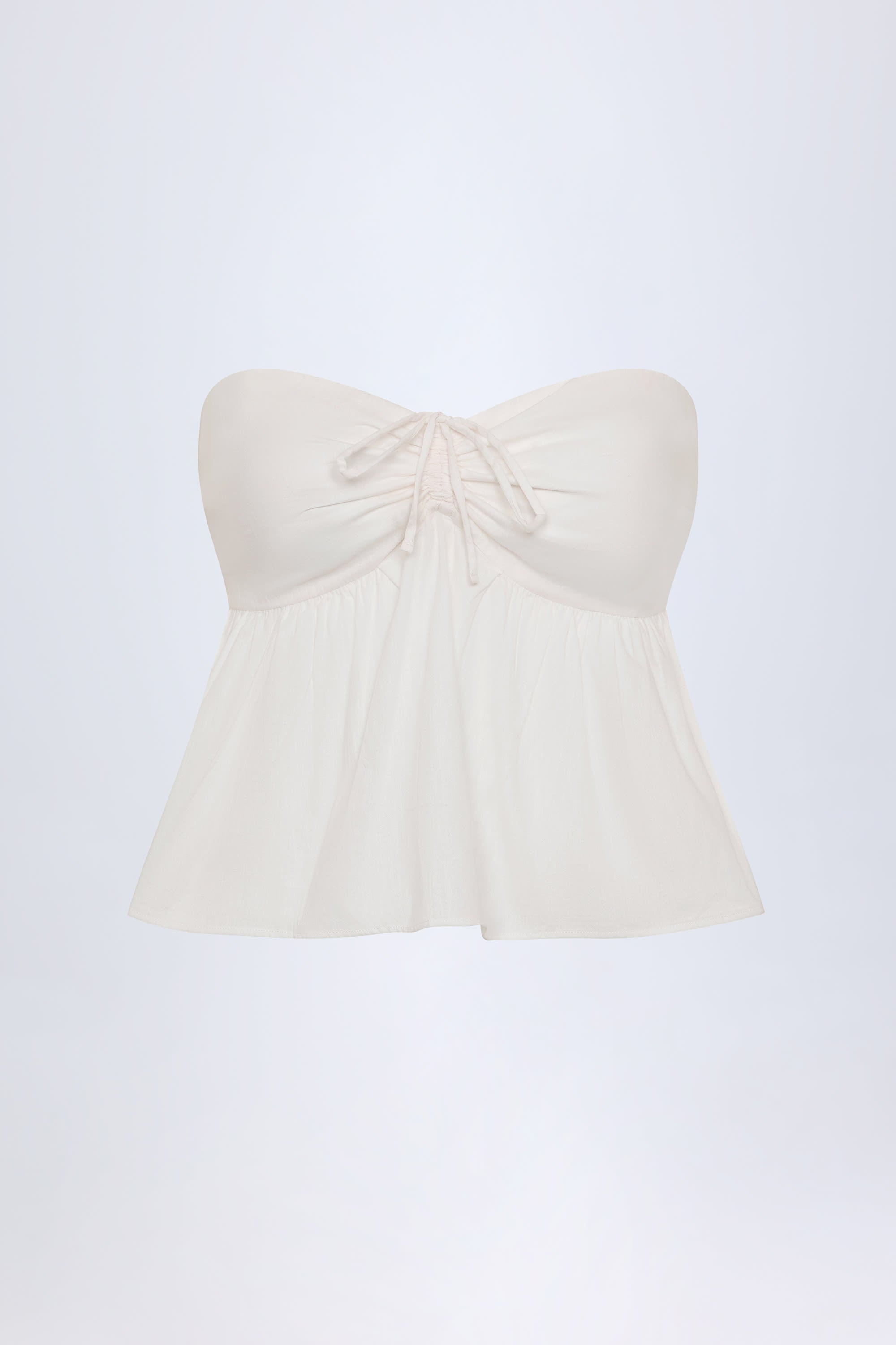 Dreamy and off-duty, the Alma crop top is crafted from lightweight and breezy cotton poplin to a bandeau silhouette with partially lined cups for enhanced coverage and features a smocked panel at the back for a comfortable fit. It features gathered detailing at the front and adjustable ties for multiple styling options.