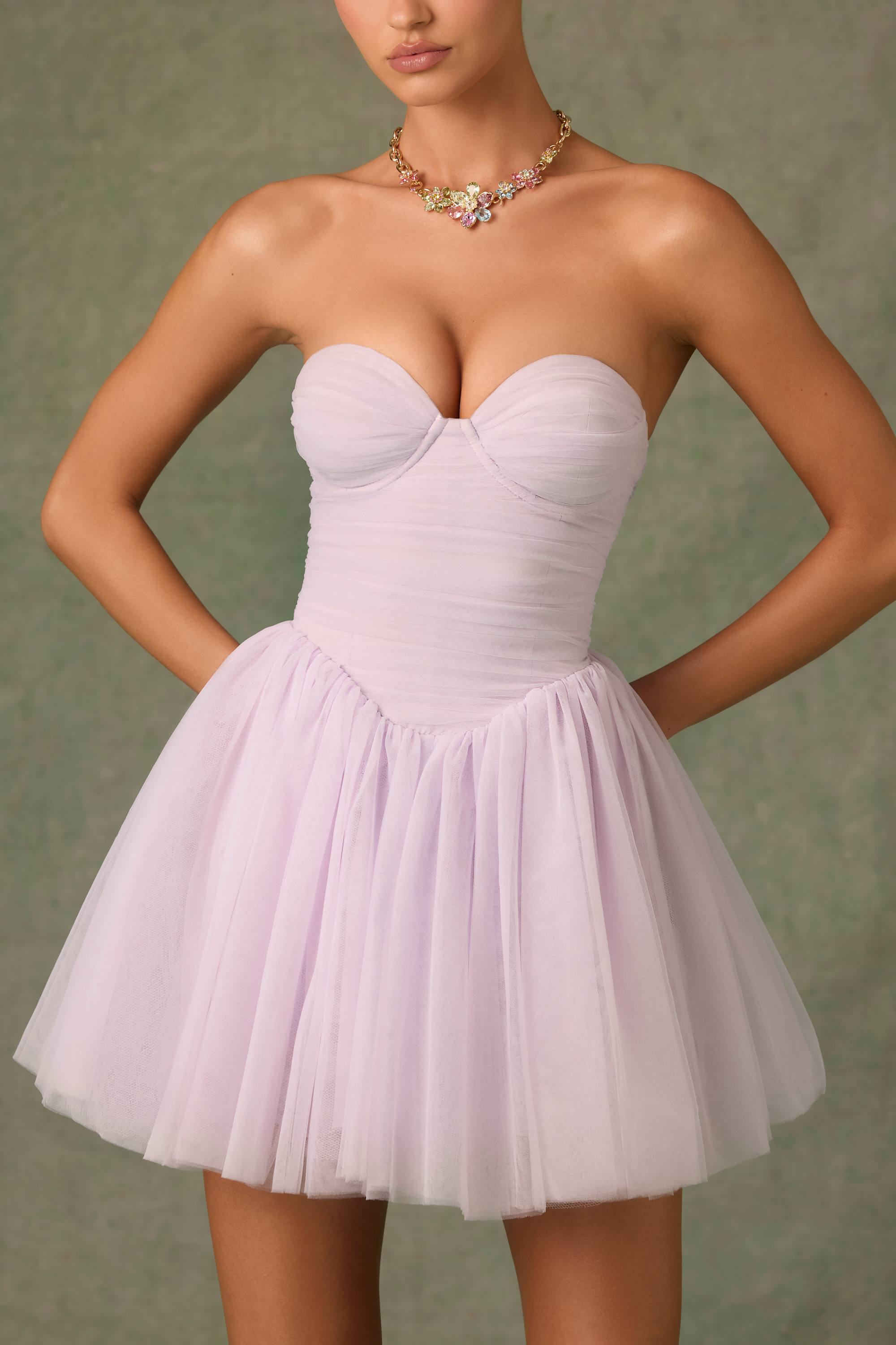Tulle Corset Mini Dress in Lilac