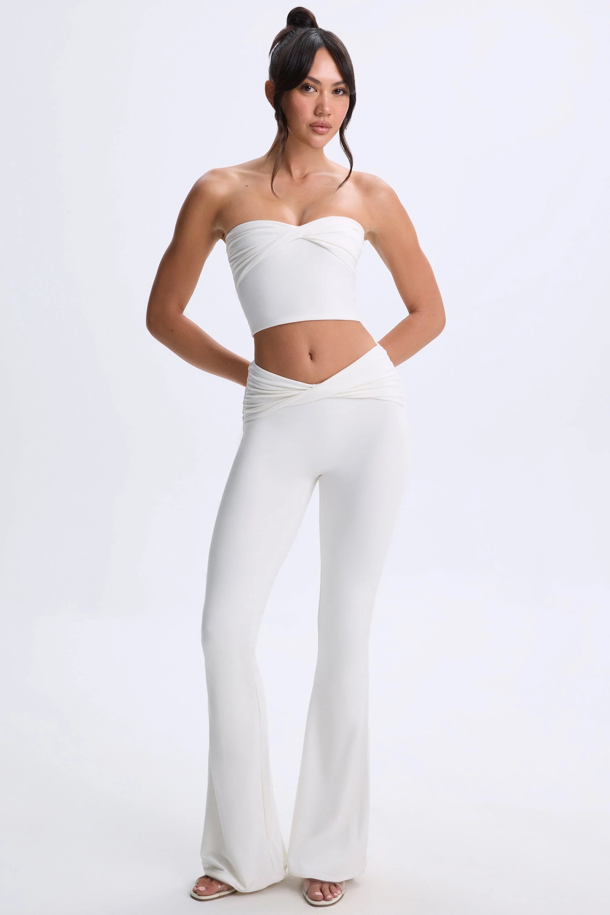 Designed for everyday styling. We love staples that transcend occasions, which is why we created the Cyra trousers. Crafted from our signature jersey fabric made with TENCEL™ Modal fibres that are naturally soft and smooth to the touch, they’re cut to a universally flattering flared silhouette and are elevated with unique twist-front detailing at the V-shaped mid-rise waistband.