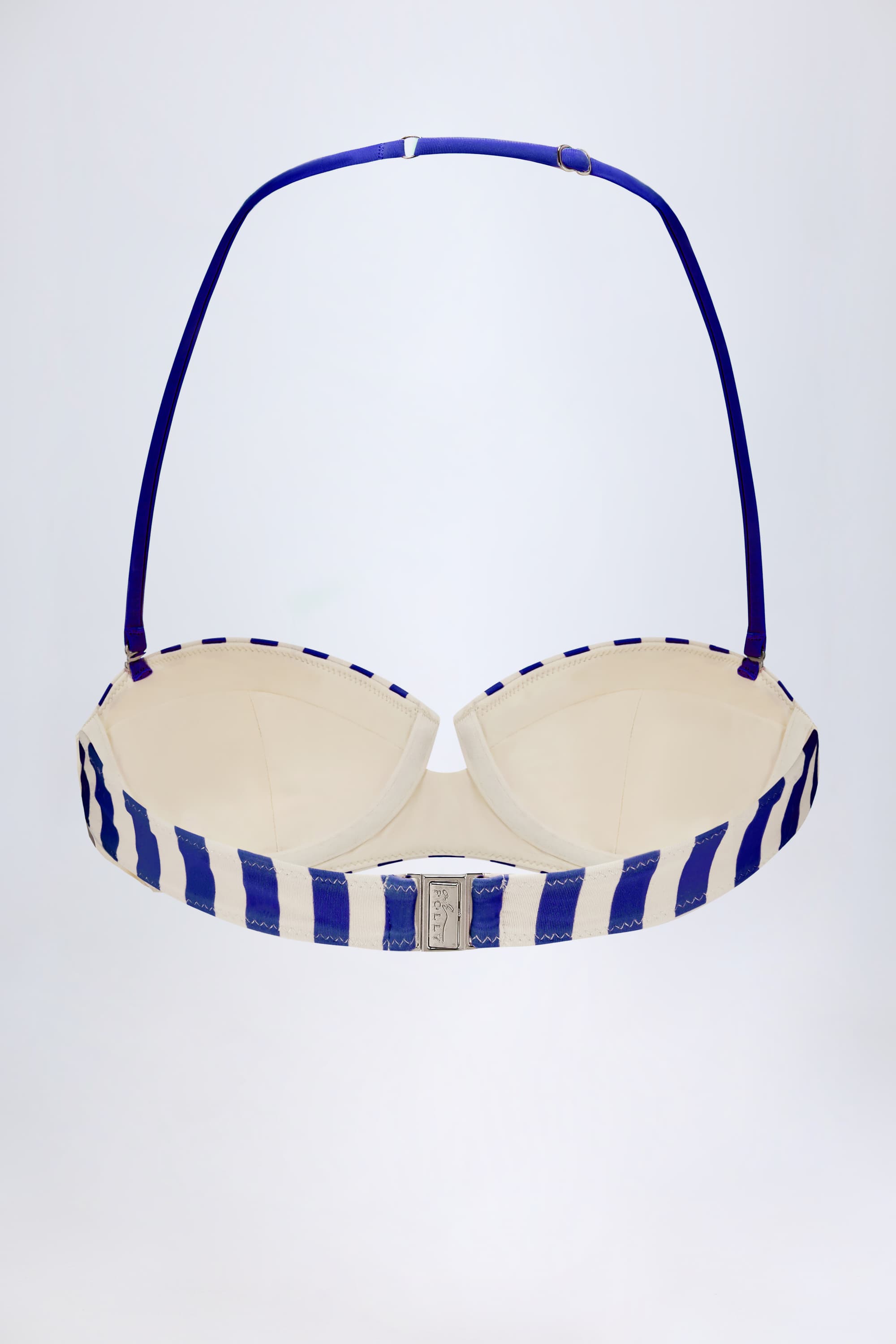 For the love of stripes. Ideal for those with a fuller bust or requiring enhanced support, the Ascona bikini top is crafted from recycled stretch-swim jersey to an underwired balconette silhouette with moulded cups. It features detachable, adjustable halterneck straps for multiple styling options.