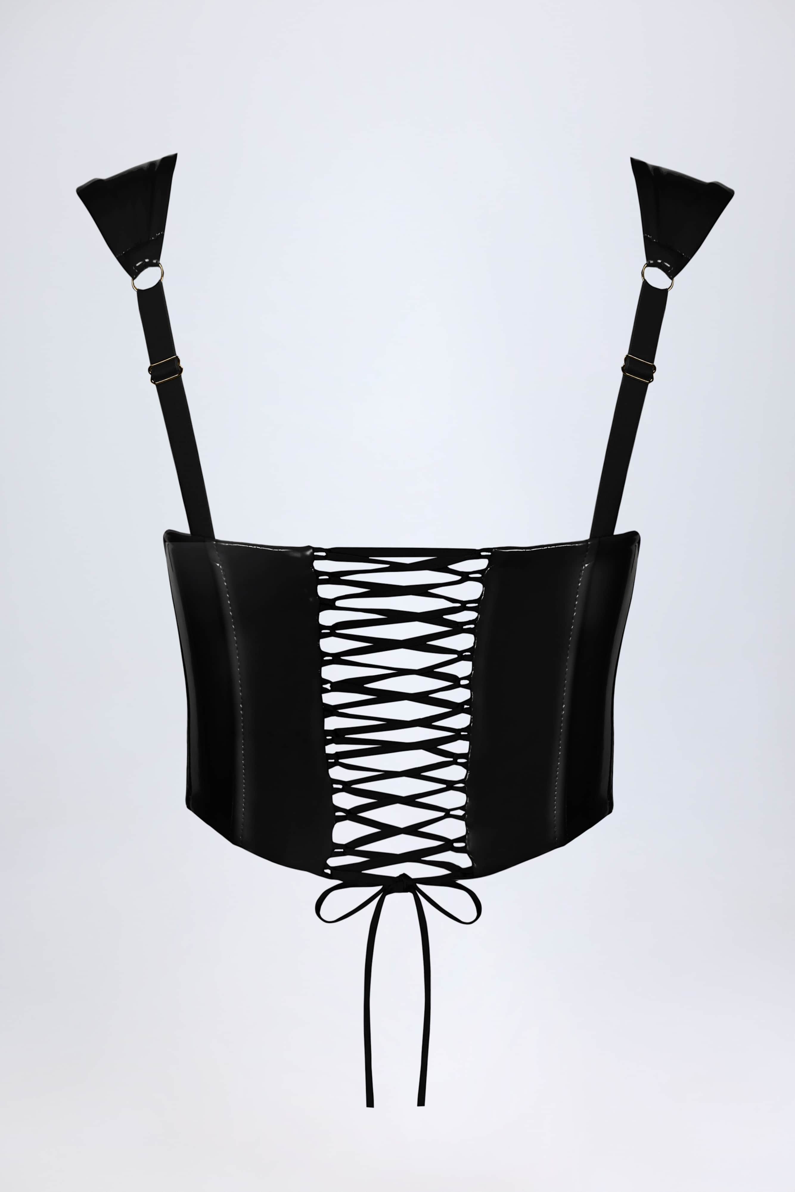Get into character. Perfect for accentuating your silhouette, the Lamiya corset top is crafted from our premium high-shine vinyl for a sleek and glossy look. It’s framed with a bust-flattering scoop neck, features built-in boning, wide adjustable straps and a lace-up back for your perfect fit every time.