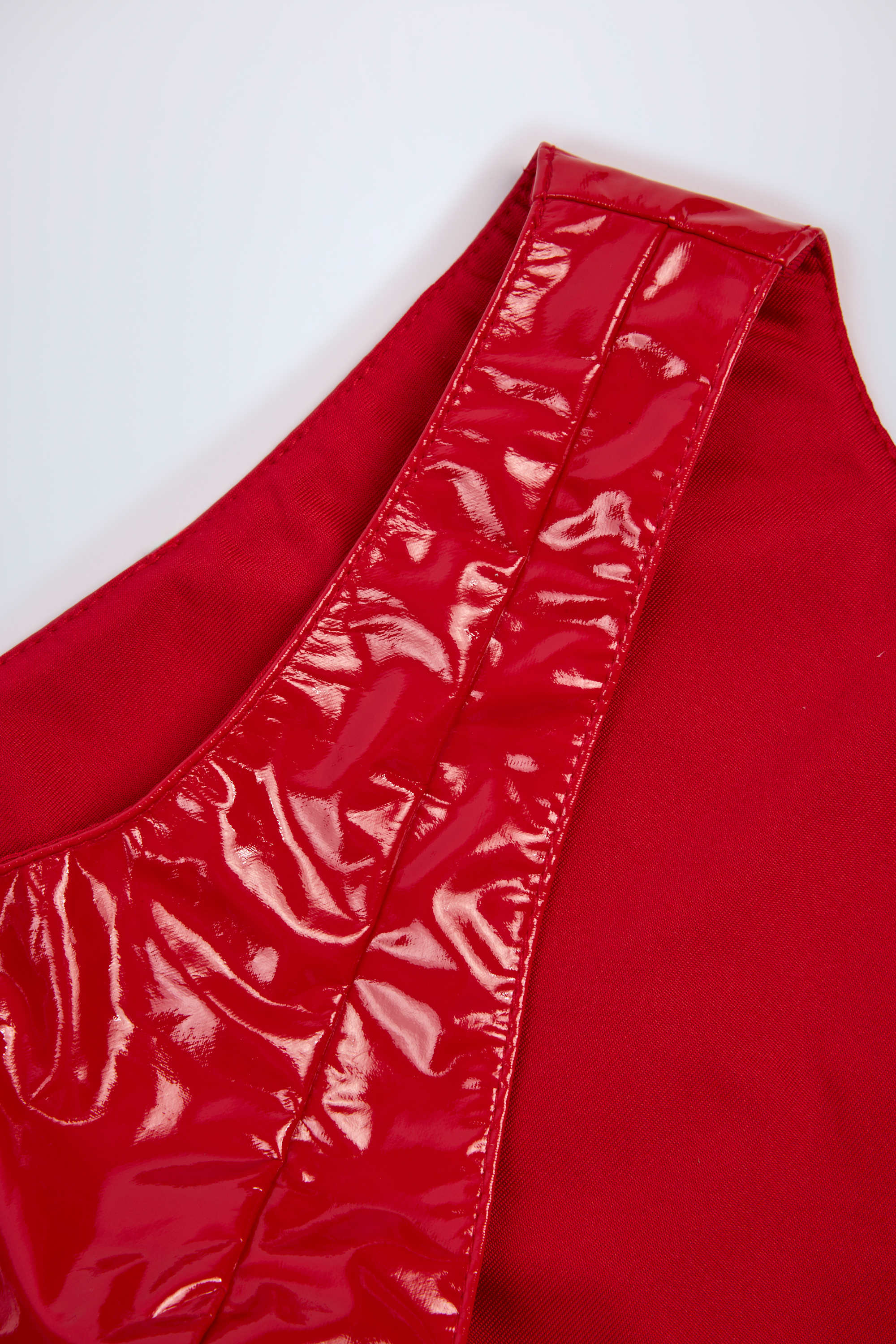 • Made from premium high-shine vinyl with a touch of stretch. Fully lined in self.
