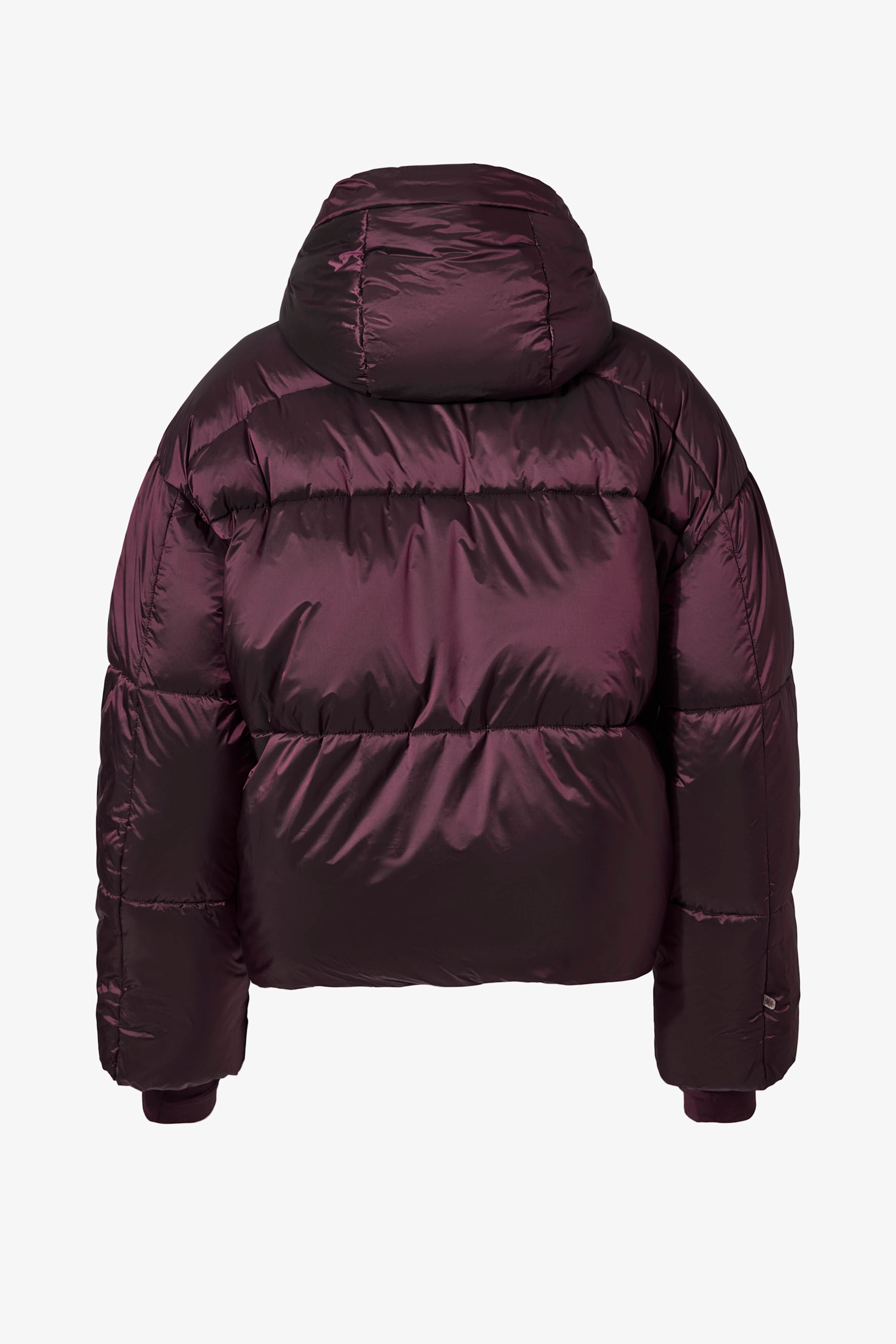 Effortlessly stylish on and off the piste. This oversized ski jacket is crafted from our new and improved waterproof fabric and cut to a cropped silhouette, framed by long sleeves with internal cuffs and thumbholes for a warm and comfortable fit. It features zip pockets and a detachable hood for customisable coverage, designed to keep you protected during snowy runs.