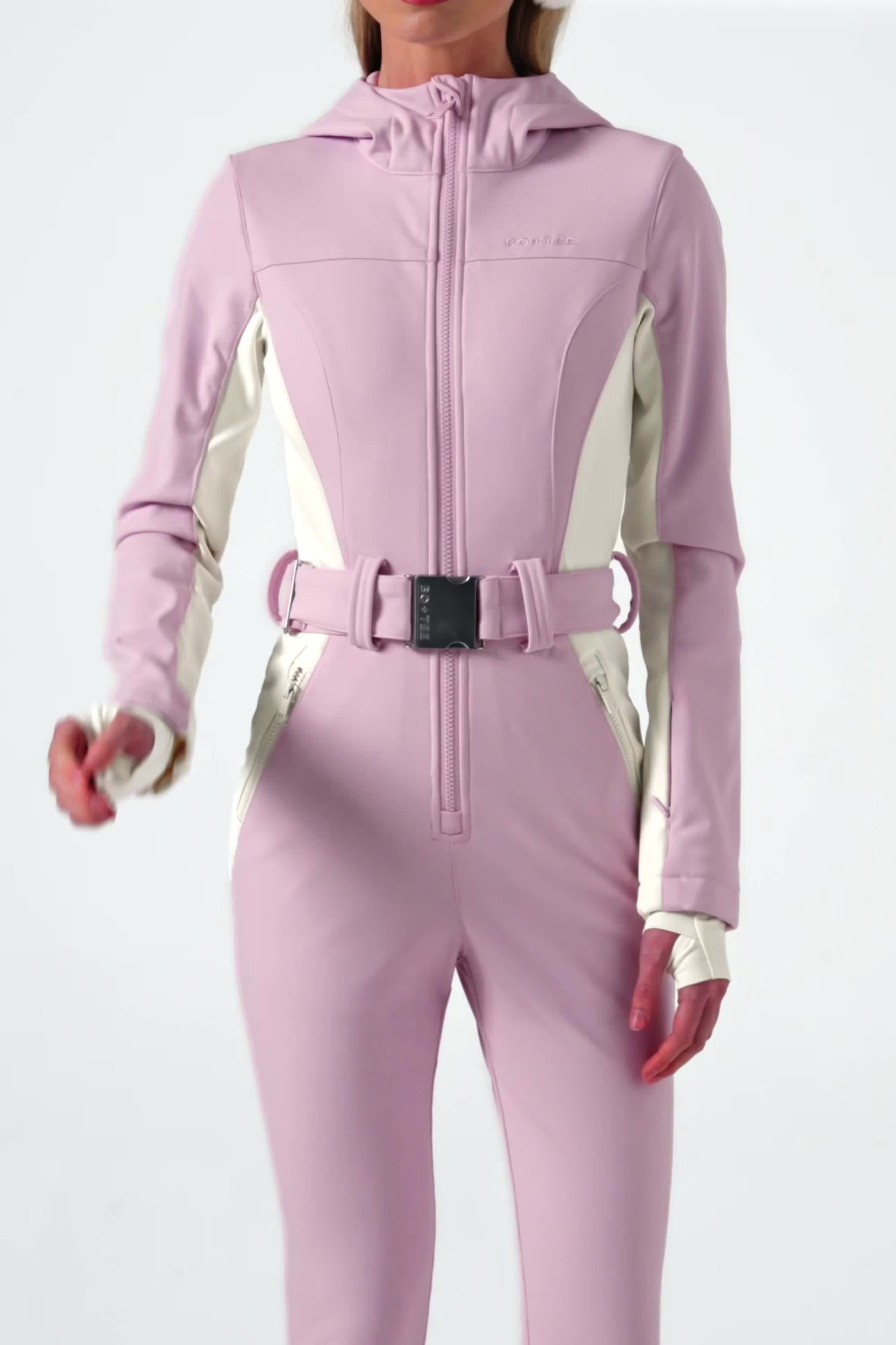 Waterproof Hooded Fitted Ski Suit in Powder Pink